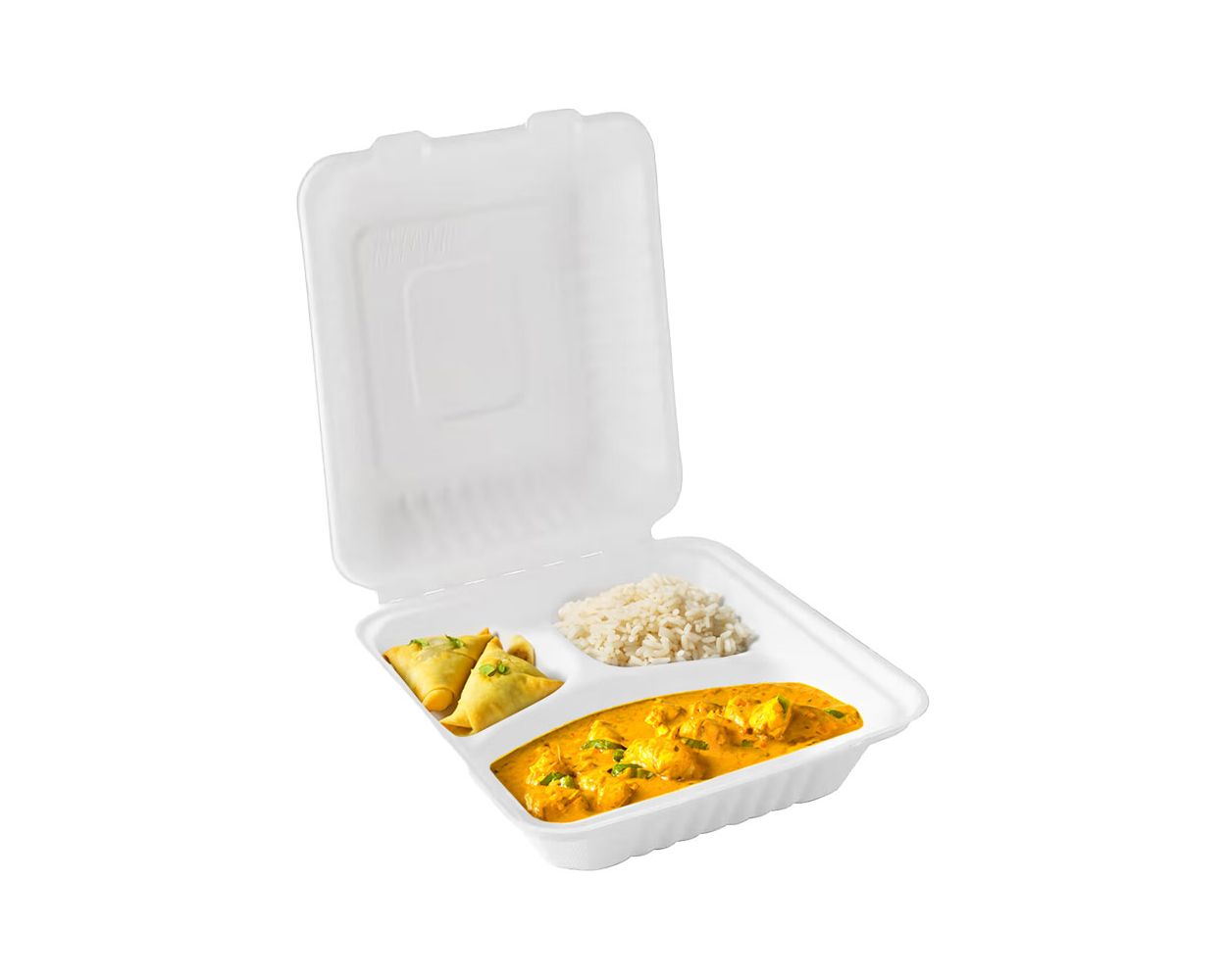 Bagasse 3 Compartment Square Clamshell 9 x 9" (Case/200)