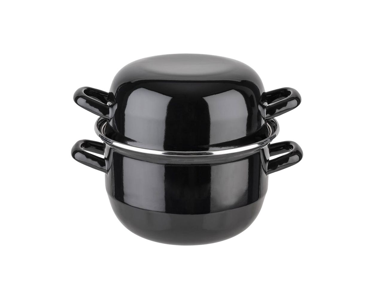 Black Enamelled Mussel Pot with Lid 18x12cm 2L