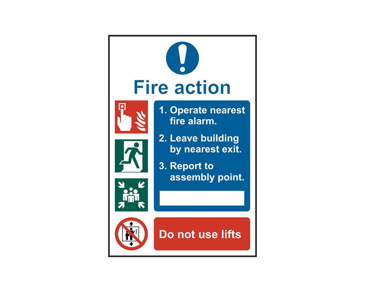 Fire action procedure safety sign.