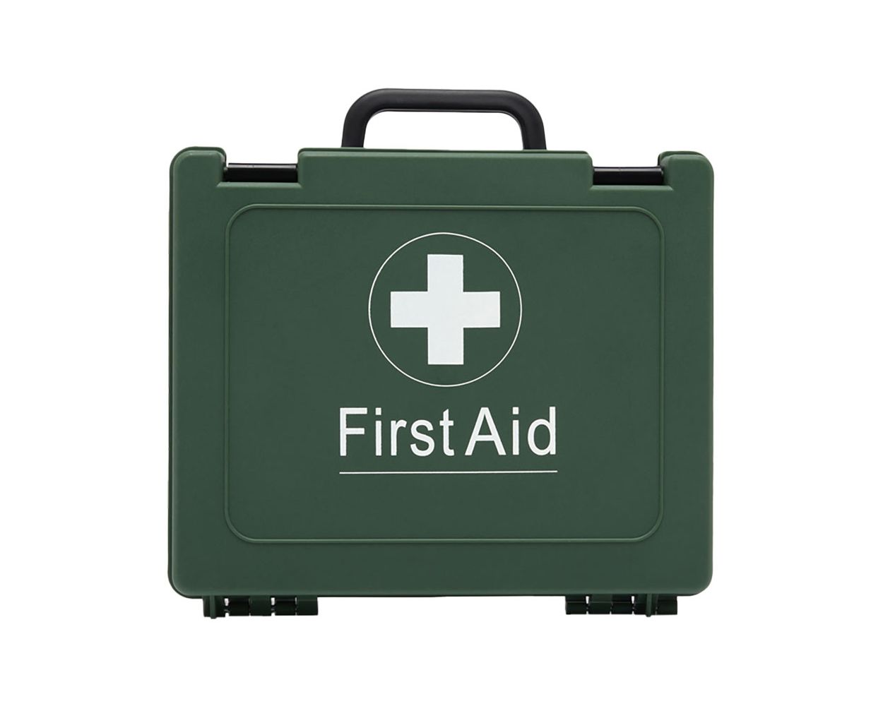 - Durable green plastic box with carry handle