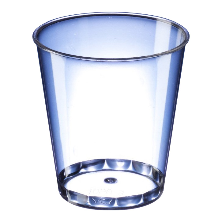 Injection moulded virgin food-grade crystal styrene shotglasses, giving perfect clarity and extra rigidity.
