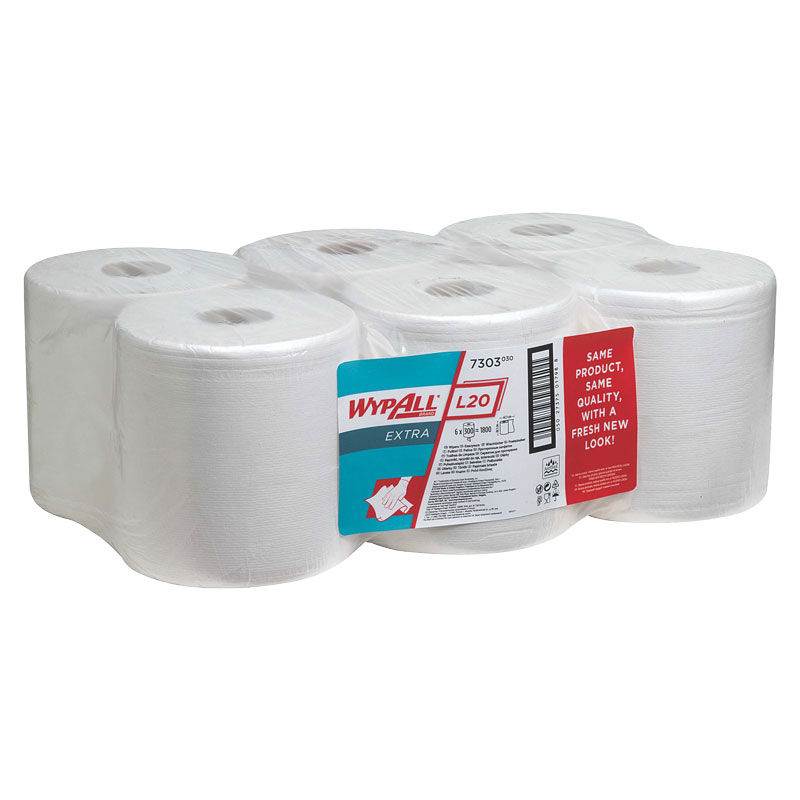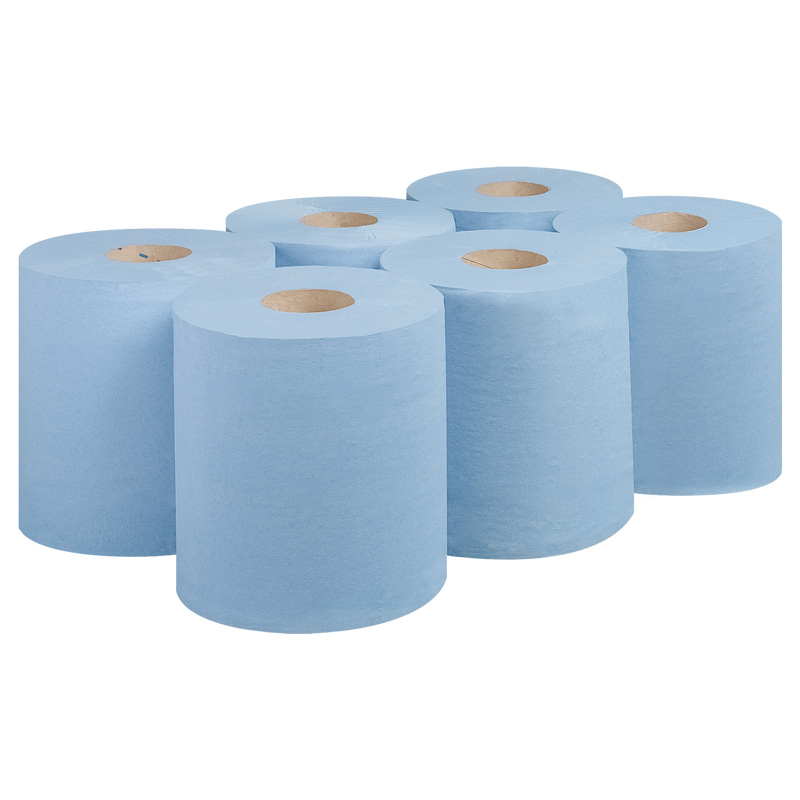 Centrefeed rolls manufactured from high quality recycled tissue paper. Packaged in a clear protective polythene outer, with easy tear perforations and marked removable cores.